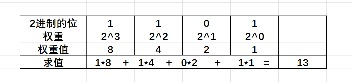 2进制1101每⼀位权重的理解