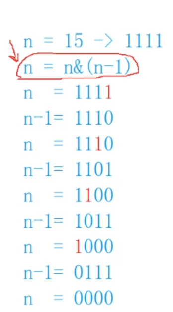 这个画红圈的表达式能去掉最右边的1,所以这个表达式能执行几次,就有几个1,从最右边的1开始。