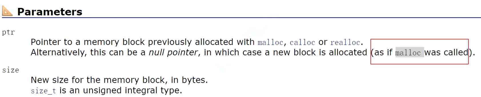 realloc这里有一句说明,原来空间可以为空,只不过这样一来realloc扩容就和malloc一样,就是说如果原来空间为空,它就申请一个新的空间,等于malloc。