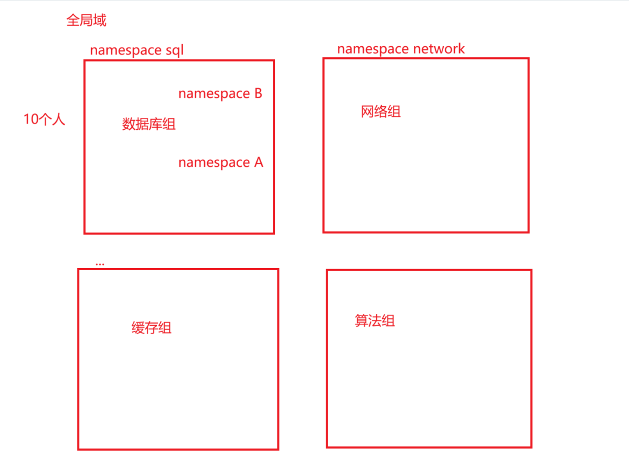 就像一个公司做项目,分成各种组,为了防止命名冲突,我们用命名空间隔离。