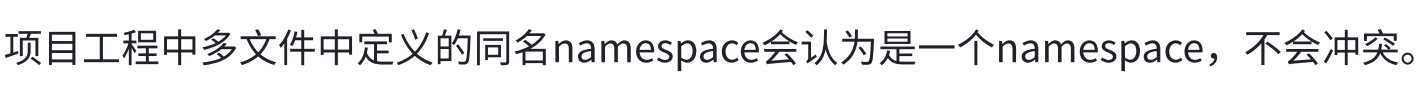 因此,不同的文件我们是可以定义同一个命名空间,无论几个,都会进行一个合并, 可以认为就像同一个文件一样。