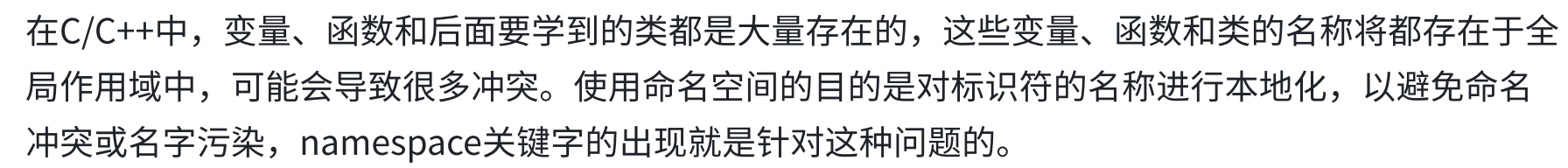 这个命名冲突的问题怎么解决呢?Bjarne博士发明了命名空间(namespace)。