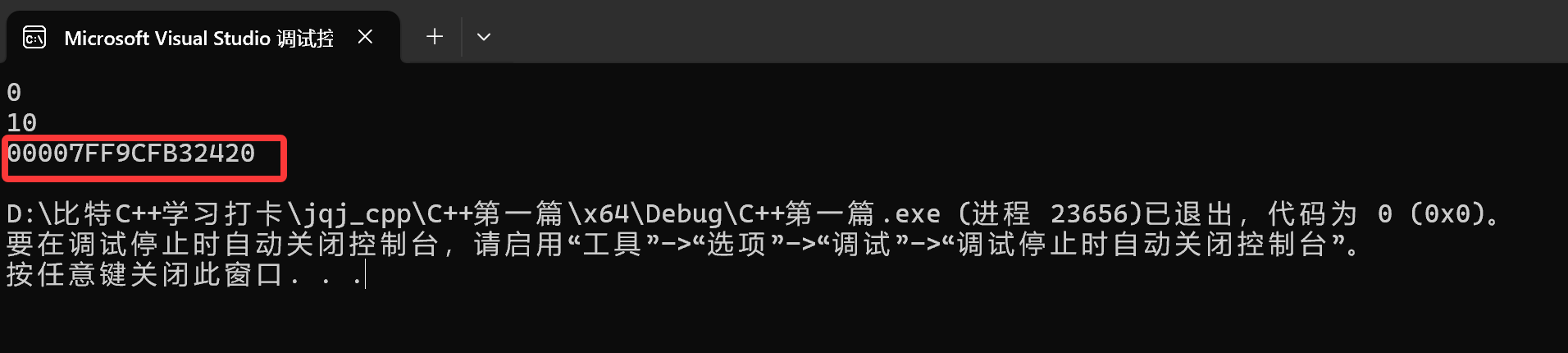 我们改成用“%p”来打印(当然博主这里是x64环境):