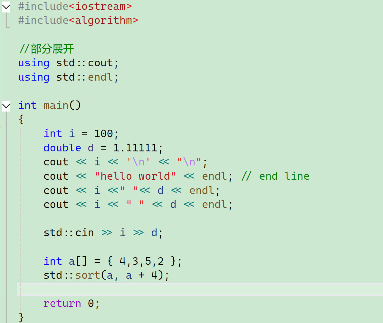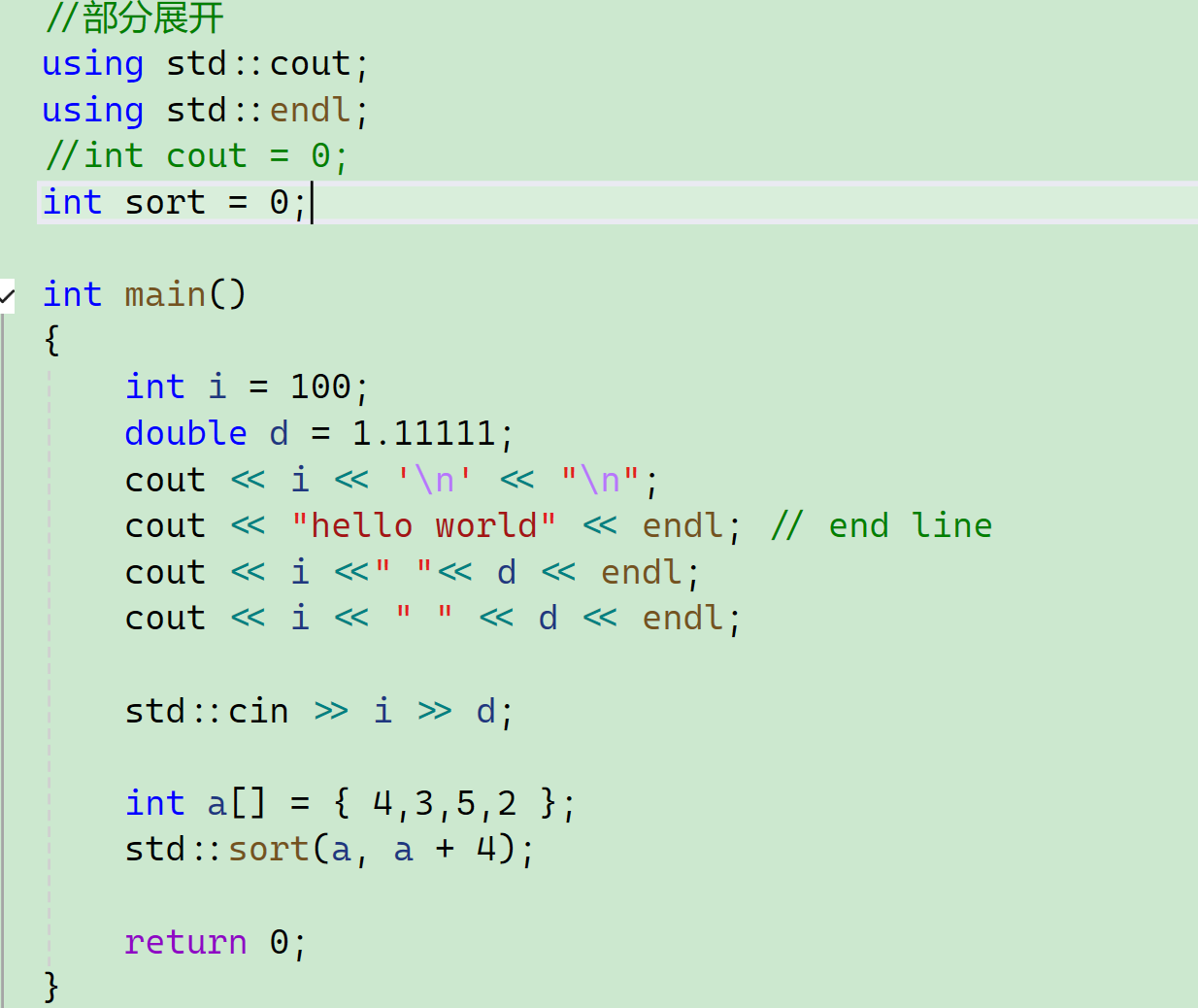 后面我们还会介绍这个std,这个sort怎么用我们后面会介绍,因为涉及到容器、迭代器等。