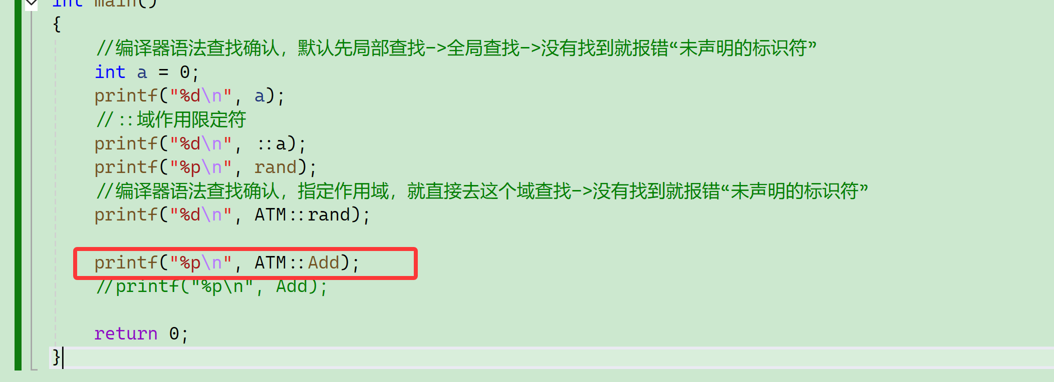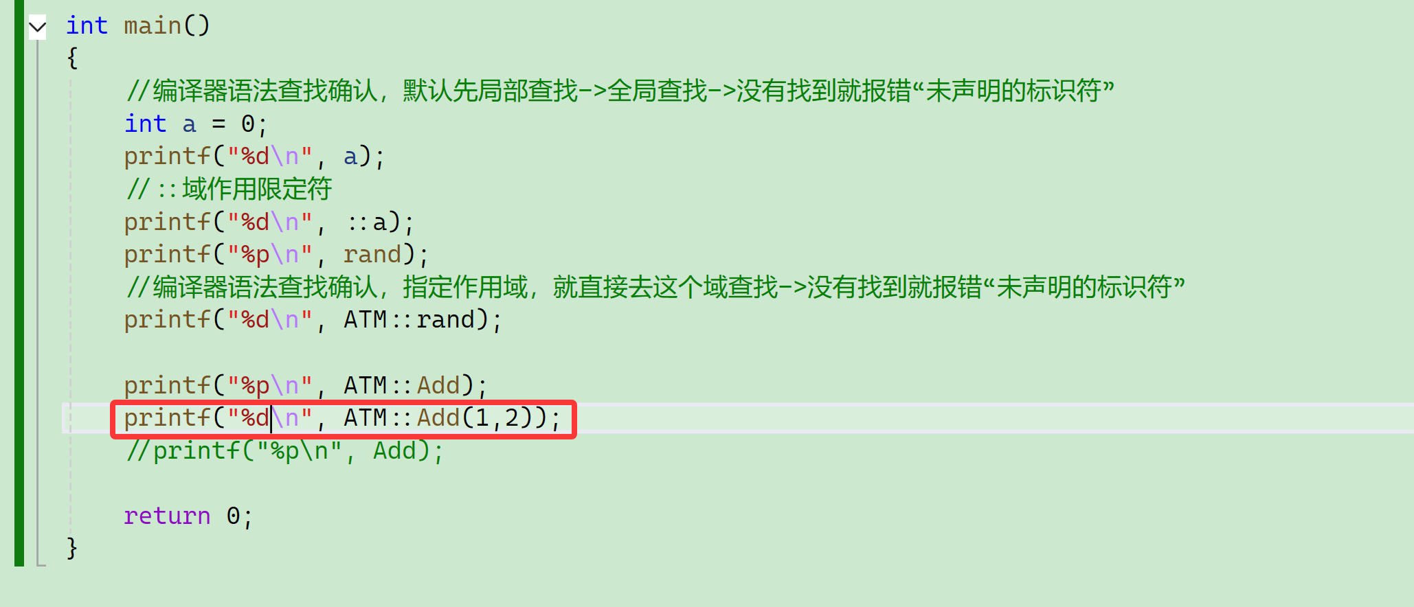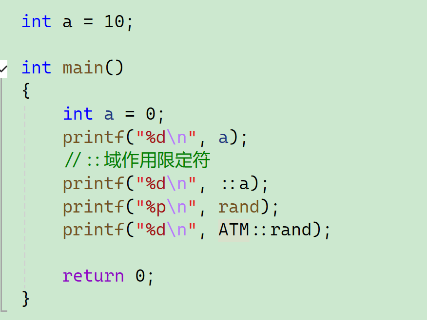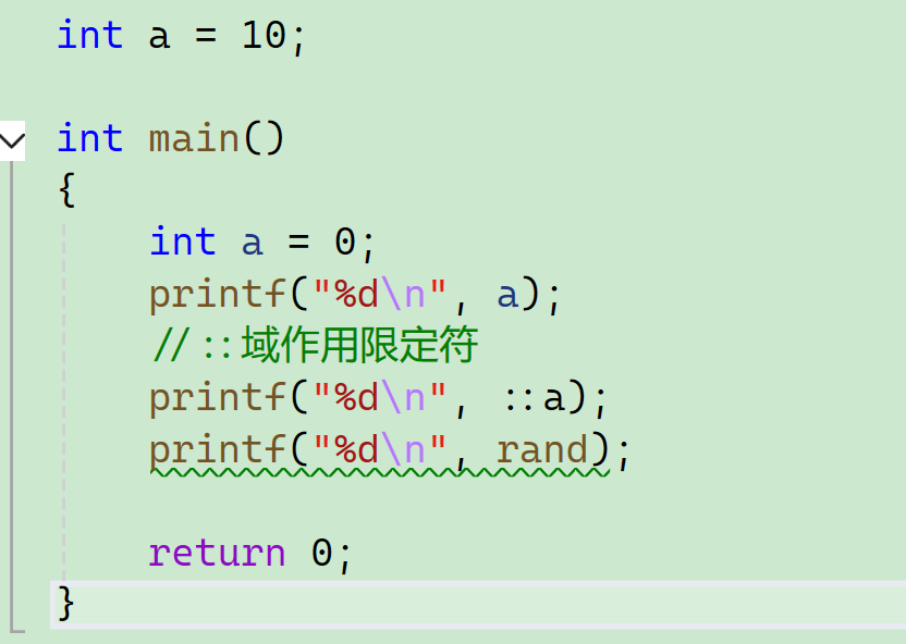 那如果我想访问命名空间里面的rand怎么办?我们前面知道了可以用域作用限定符::