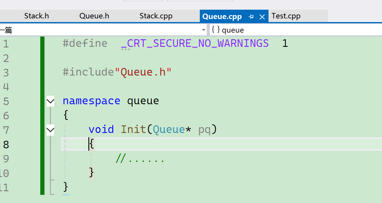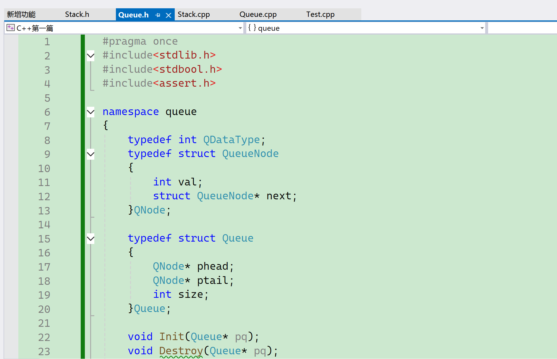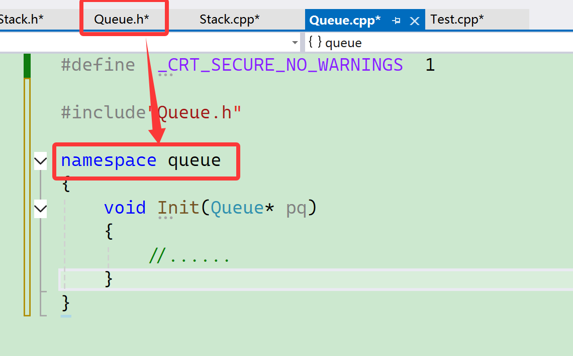 <Queue.h> 和<Queue.c>虽然定义在不同的文件里面,但是会把它们合成一个。