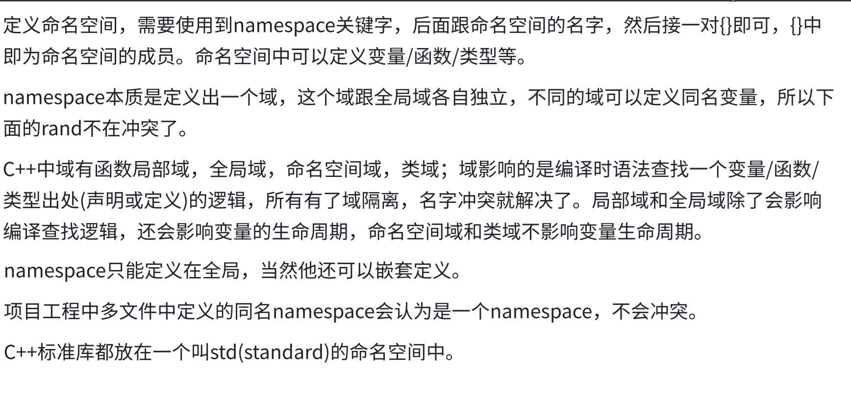 因而C++不敢用命名空间封起来。
