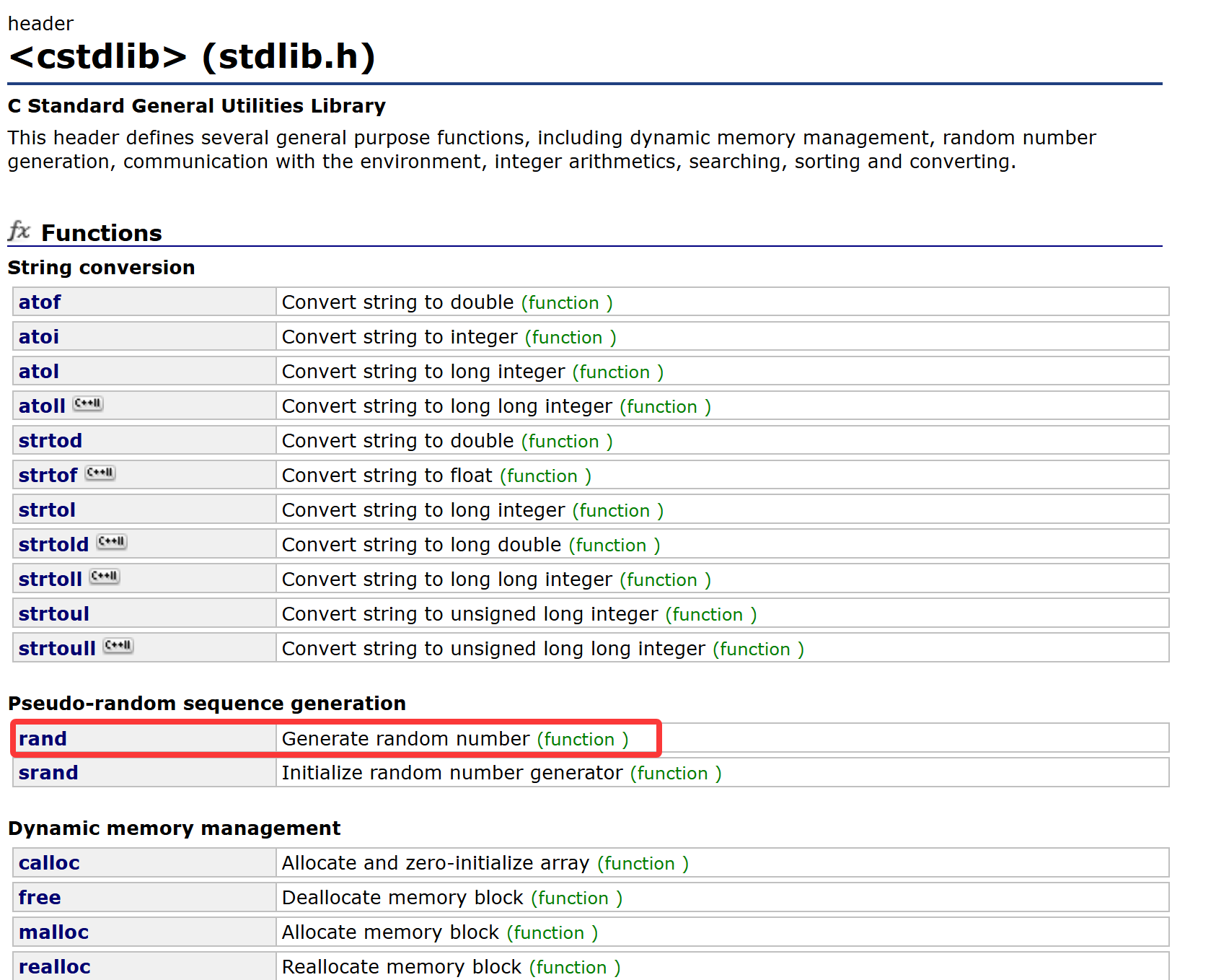 我们在C++文档检索<stdlib.h>可以看到这样一条: