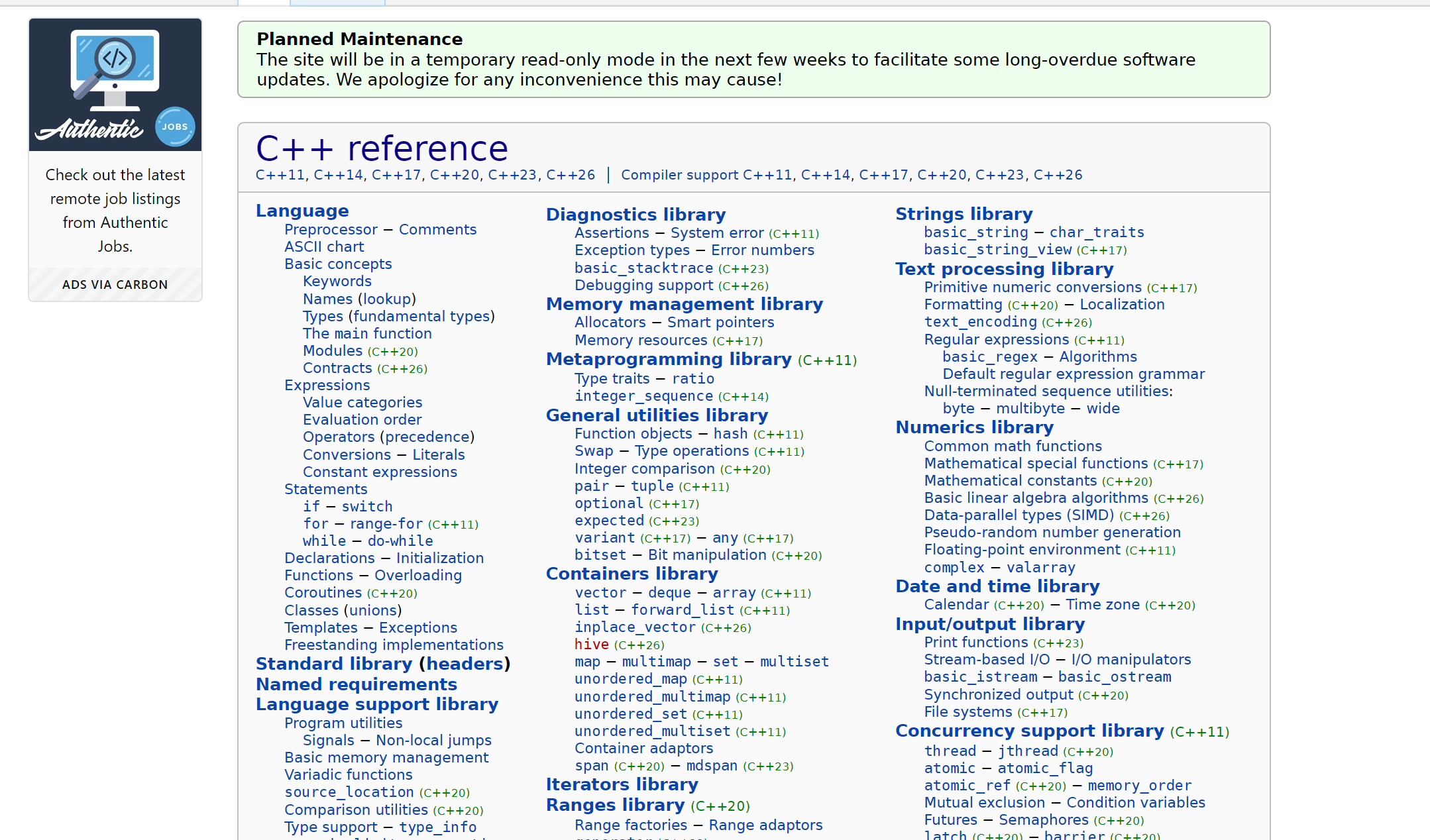 大家也能感受到,这个文档的排版确实是不如前者,但是这个的优点就是“全”“官方同步更新”,不仅信息很全,而且更新到了最新的C++标准,就是内容不如cplusplus好懂。