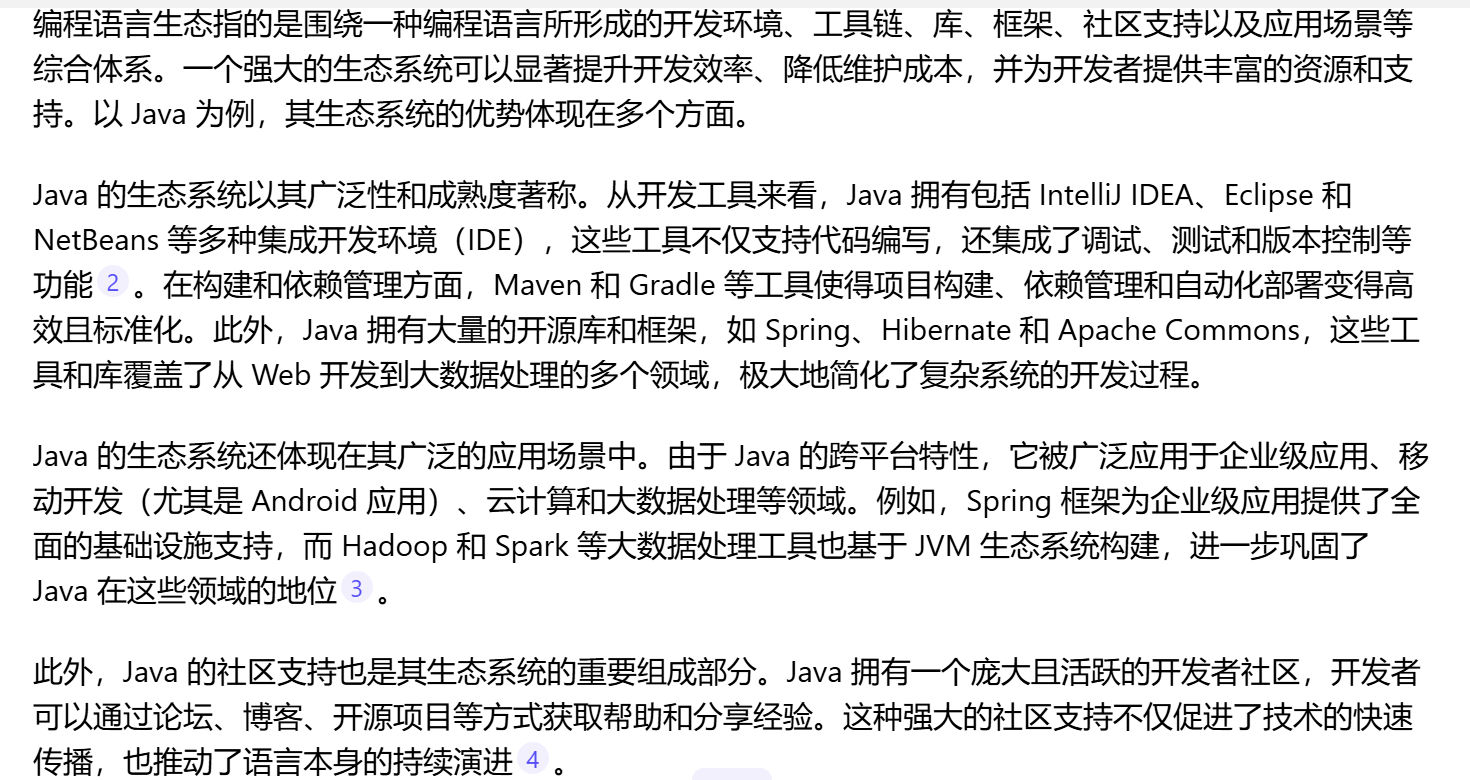 Java的生态很好,这个生态说的就是它的框架、库搞得好,更新快。因为Java是公司搞出来的,盈利性的,而C++是个人搞的,C++的委员会纯纯为爱发电,比较偏公益性,没有啥利益。
