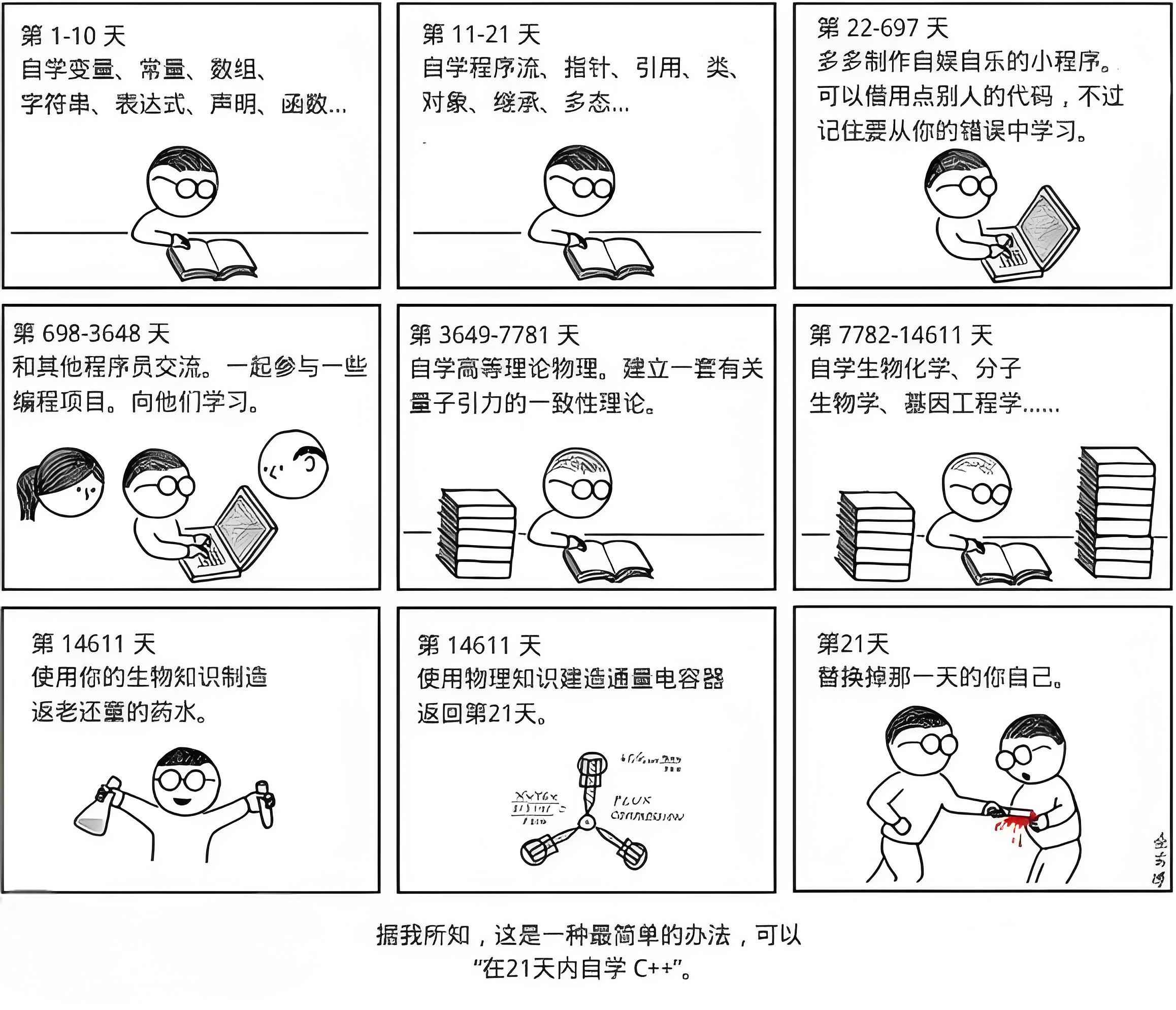 C++学习难度的知名梗图:“21天自学C++”