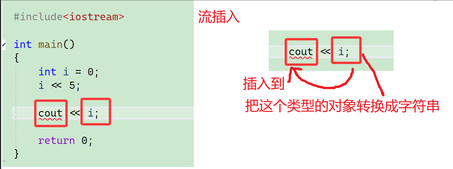 比如说把i这个类型的对象转换成字符串插入到cout里面去,然后输出: