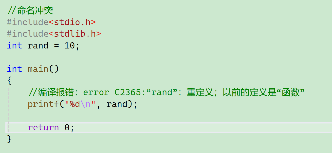 这就是命名冲突了,编译器不知道你指的是哪个rand,<stdlib.h>里面也有一个rand。