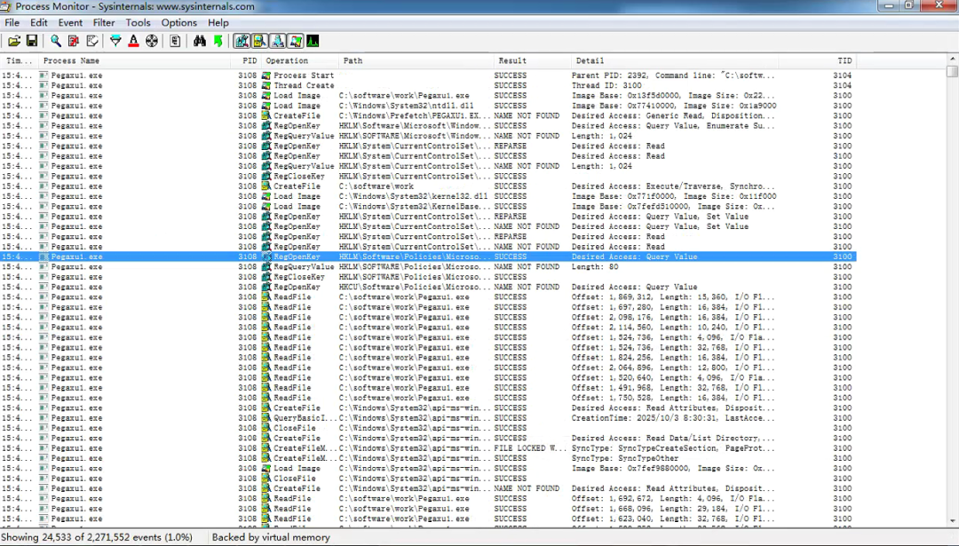 1.运行Process Monitor(procmon)实时记录恶意软件进程信息、带有集成符号支持的完整线程堆栈等日志,如下所示: