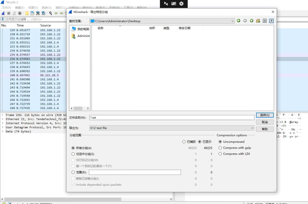并将网络流量数据导出保存为malwarepacket.txt,如下所示