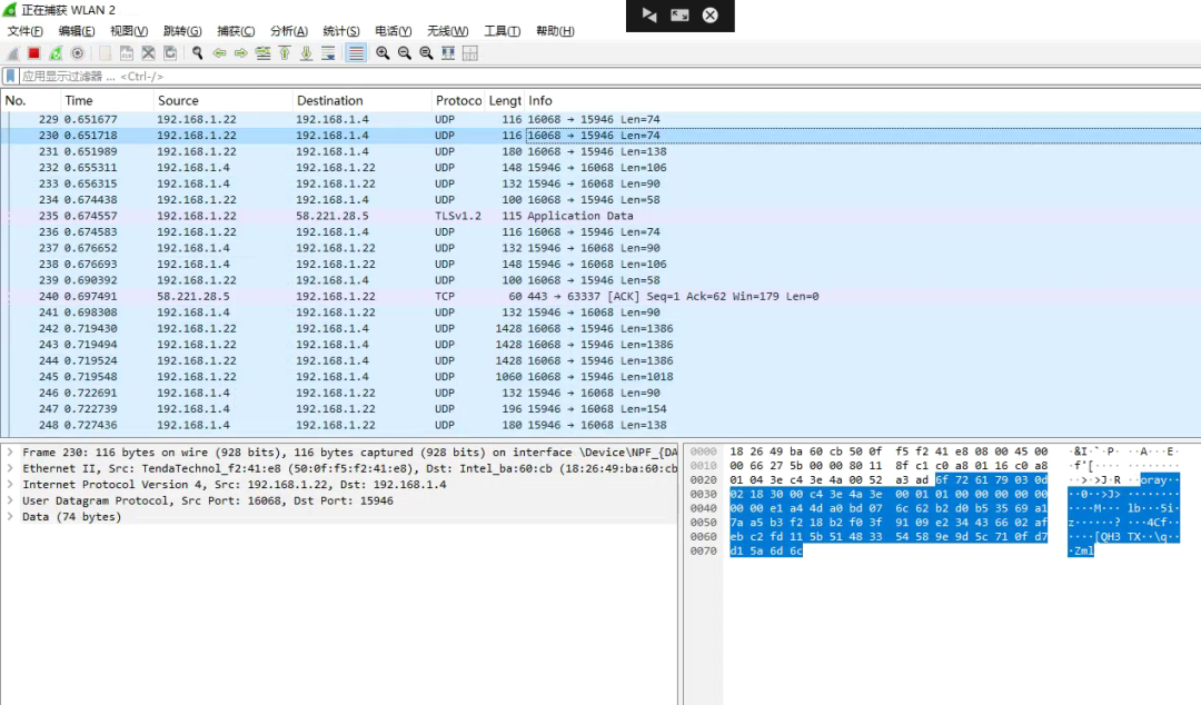 3.运行wireshark捕获恶意软件运行的网络流量包,如下所示