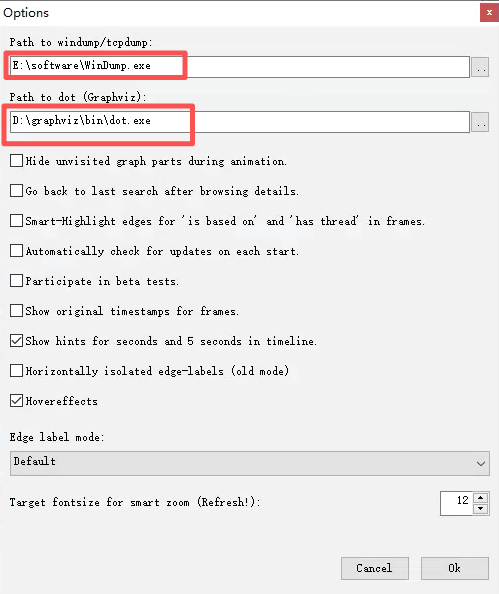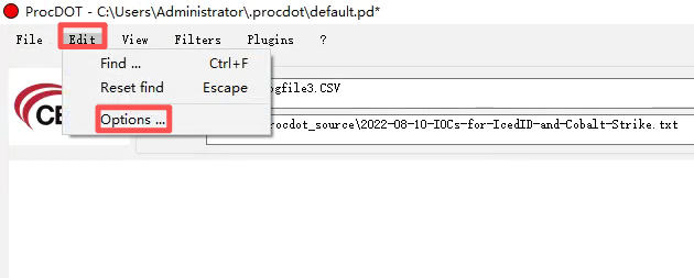 为了运行ProcDOT,需要先指定WinDump和Graphviz的路径。
