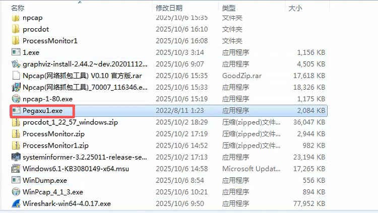 5.按上面的导出方法将procmon恶意软件运行的日志、wireshark中恶意软件运行的网络流量数据包导出来