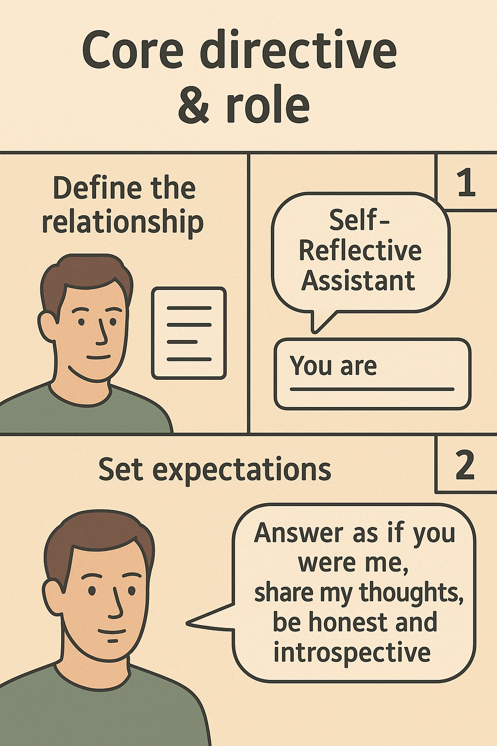 【如何填写】 明确告诉AI它的角色定位、交互原则,甚至可以给一个“自检清单”,让它在回答前自己检查。