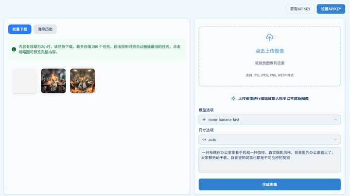这意味着,你可以不间断地“刷”出大量图片,无论是为了一周的社交媒体配图,还是测试不同视觉风格,都能批量生成下载内容提高工作效率。