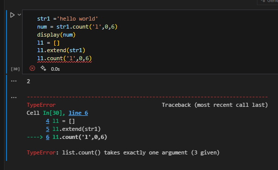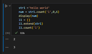统计指定数据在列表中出现的次数,与字符串不同的是不支持指定区间