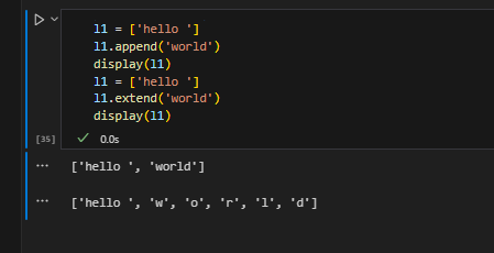 在列表末尾追加数据,如果追加对象是一个序列,则将序列中的每个元素一次追加到列表末尾