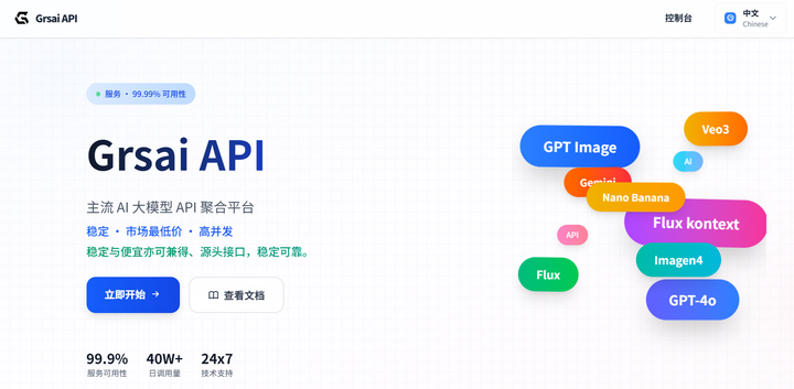 GrsAi价格(rmb) | ¥0.08/视频 | ¥0.02/张 | ¥0.022/张 | ¥0.03/张,¥0.04/张 | ¥0.035/张,¥0.07/张 | Input ¥0.3/M Tokens, Output ¥0.6/M Tokens | Input ¥1.25/M Tokens, Output ¥6.25/M Tokens |