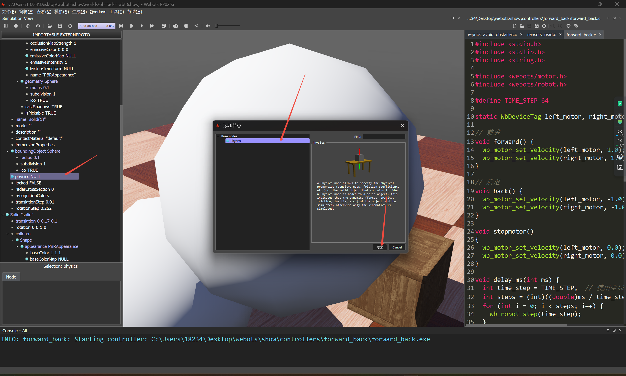 添加完成后记得保存一下世界,点击开始模拟,会看到球掉落