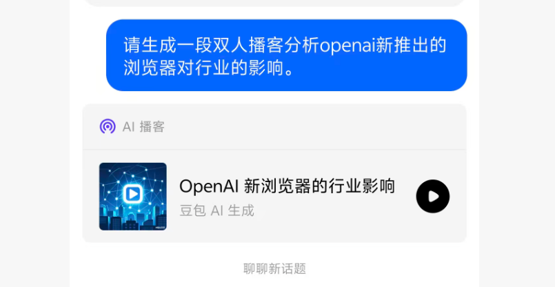 先来说下语音和播客方面,在前面我实际分享过当时扣子空间的双人播客功能,实际这个功能已经完全内置到了豆包APP里面。