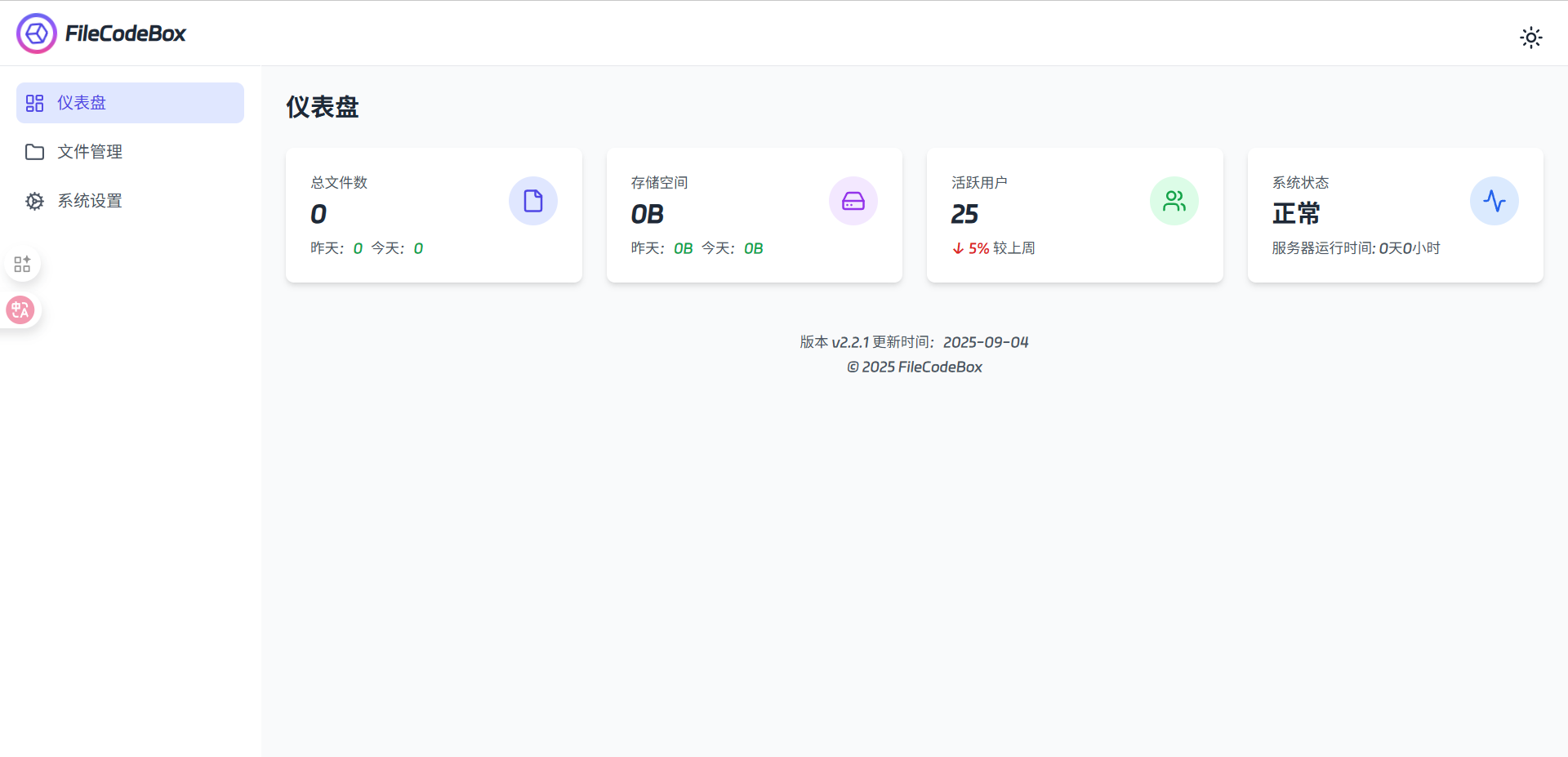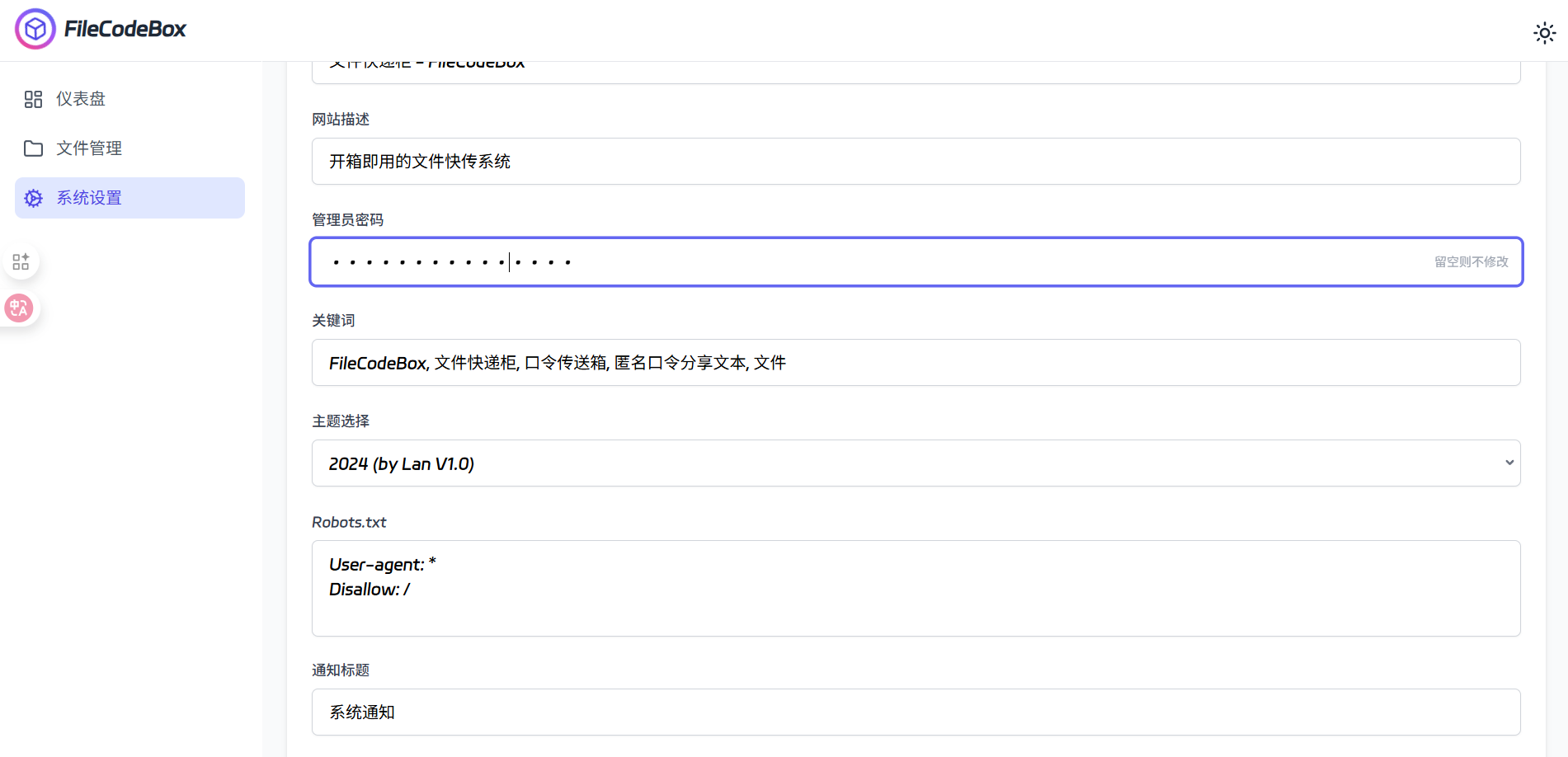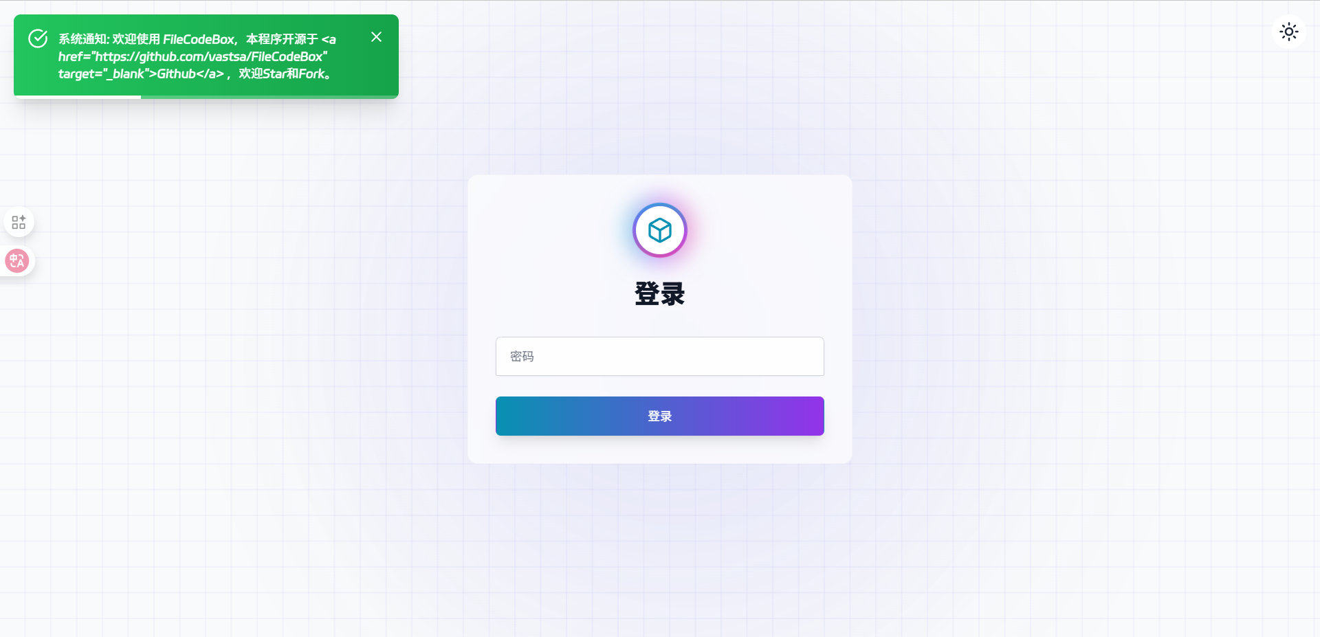 默认管理员密码是FileCodeBox2023,登录后即可进入后台。