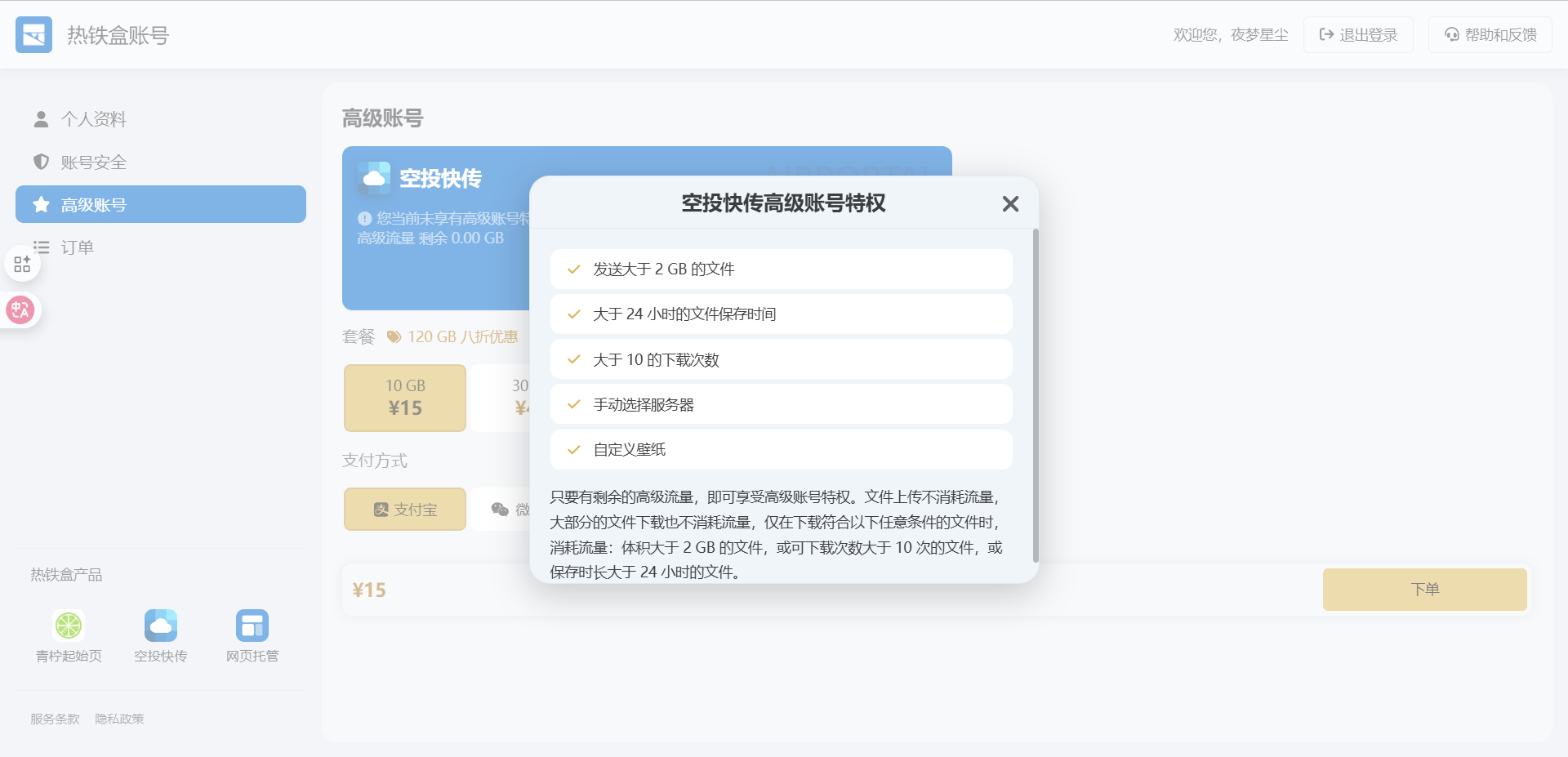 但毕竟是免费的,受限于运营成本,部分功能需要高级账号特权才能使用。