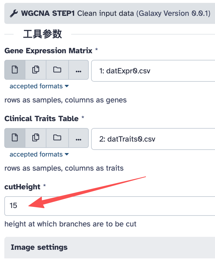 因为是测试数据,我们知道这两个参数的合理值。如果你是分析自己的数据,可以先将 CutHeight 设置为:100,R^2 值设置为:0.85。