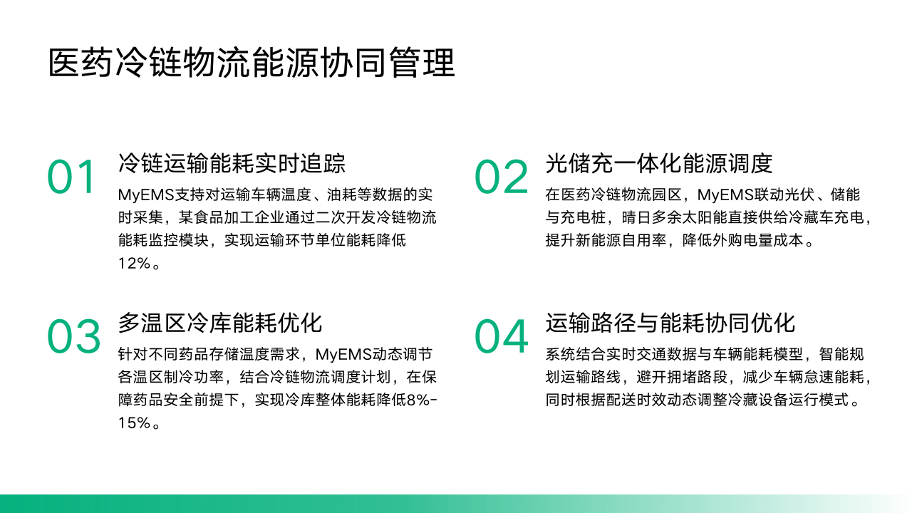 MyEMS的这些功能相互配合,为医药冷链物流的能源协同管理提供了全方位的支持,有助于企业实现节能减排和经济效益的双赢。