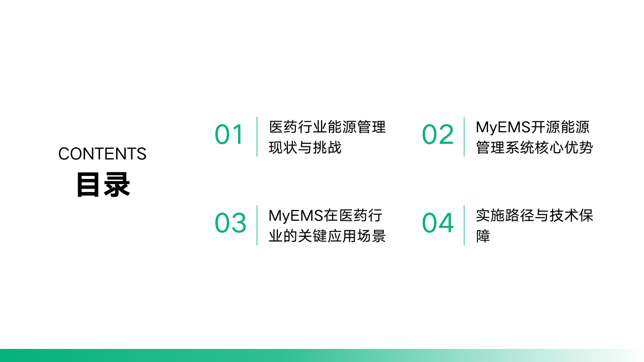 前面我们了解了本次演讲的目录。接下来,我们将聚焦于医药行业能源管理现状与挑战。这部分内容至关重要,它是我们理解后续如何借助MyEMS系统解决问题的基础。通过剖析现状与挑战,我们能更清晰地看到行业痛点,为探寻解决方案做好铺垫。