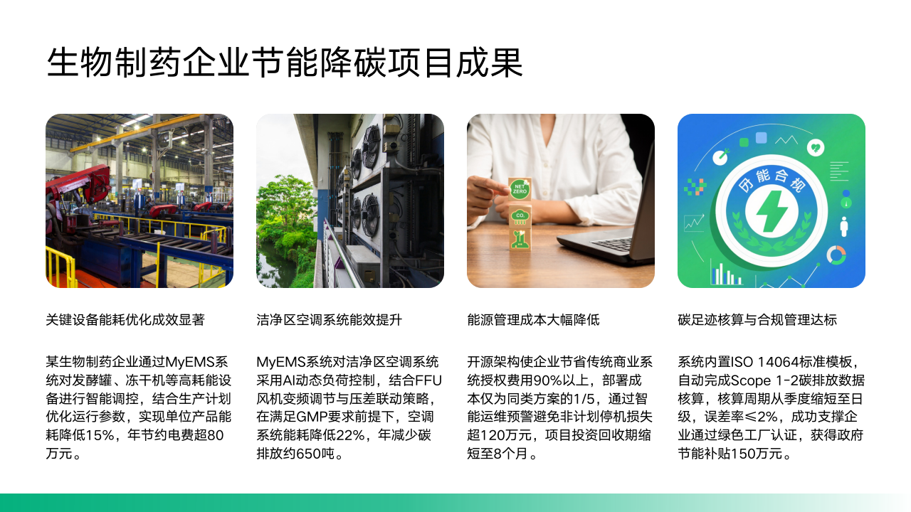在此,我诚挚地呼吁各位,抓住这一重要机遇,积极行动起来,将MyEMS应用到企业的能源管理中。让我们携手共进,共同推动医药行业在能源管理领域迈向新的高度,为实现双碳目标贡献我们的力量。