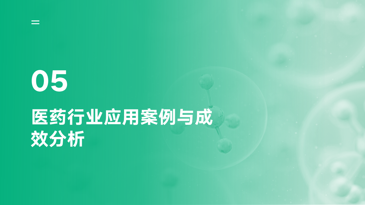 前面我们详细了解了系统的实施路径、数据安全、用户培训等内容。现在,让我们将目光聚焦到实际应用上。本页将为大家呈现医药行业应用案例与成效分析,通过三甲医院、生物制药企业和医药园区的实例,展示系统带来的显著成果,接下来让我们一探究竟。