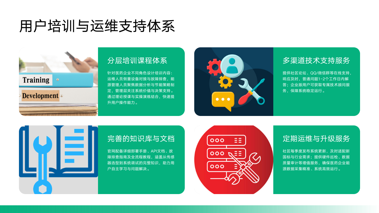 为保障医药企业能源管理系统的有效应用与持续发展,我们构建了全面的用户培训与运维支持体系。