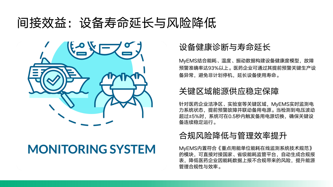 MyEMS系统为医药企业带来的间接效益显著,集中体现在设备寿命延长与风险降低两方面。