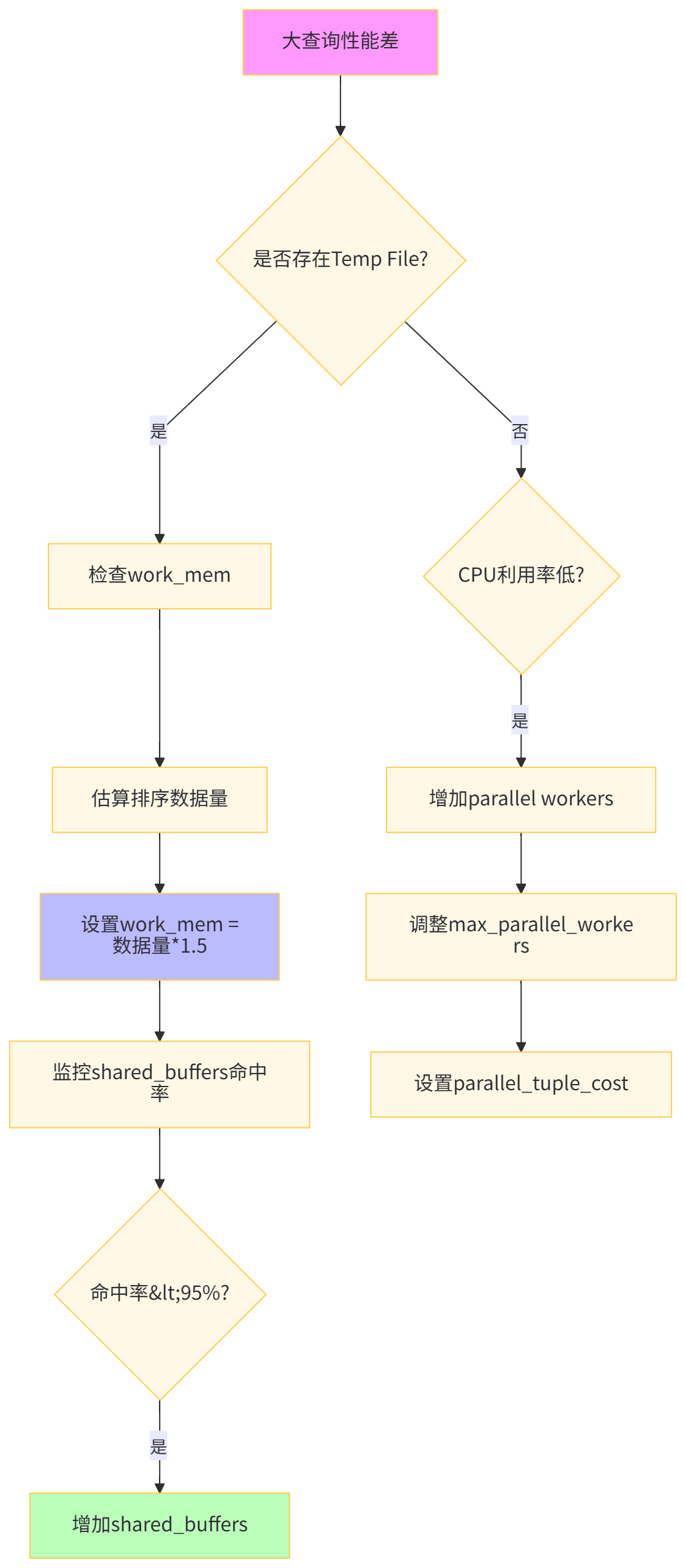 work_mem = 总内存 * 0.25 / max_connectionsshared_buffers = 总内存 * 0.25effective_cache_size = 总内存 * 0.75