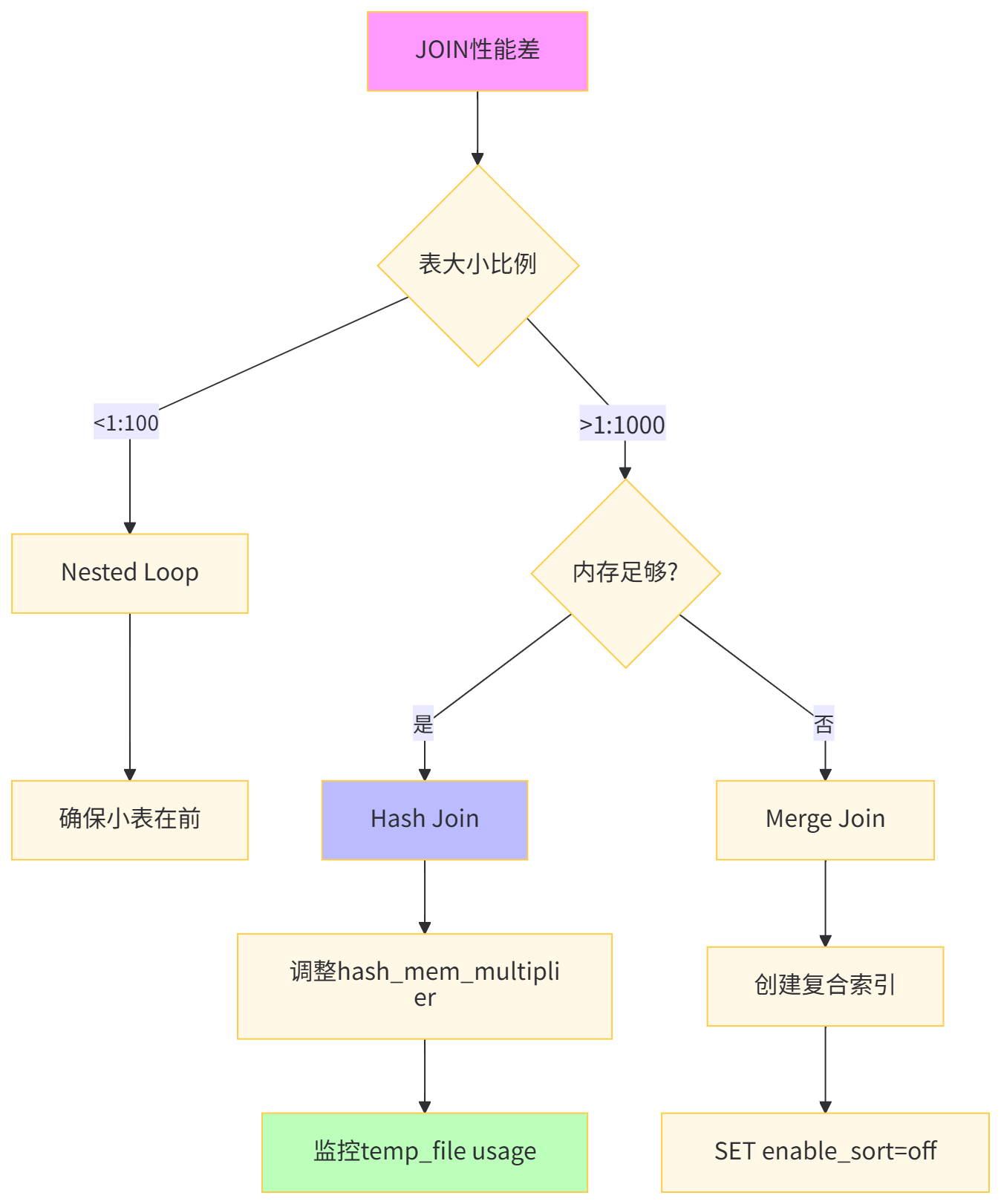 | Merge Join | 预排序/索引 |
