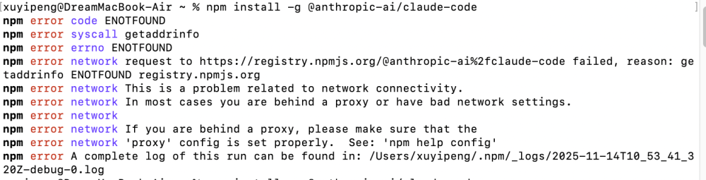 这是一个在 macOS 上非常常见的问题,因为 /usr/local/ 目录默认属于 root 用户,而普通用户没有写入权限。直接使用 sudo npm install -g 便可以可以解决问题: