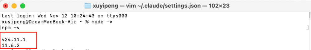 完成Claude Code安装后,需要配置环境变量,首先需要在终端执行以下命令进入Claude Code配置文件:vim ~/.claude/settings.json。进入之后这里需要输入以下内容:
