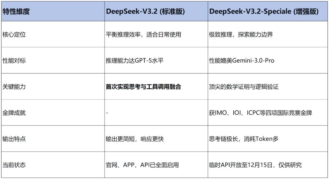 12月1日,DeepSeek发布的新一代的“双机组合”——V3.2 和 V3.2-Speciale,把这套共识拧了一下: