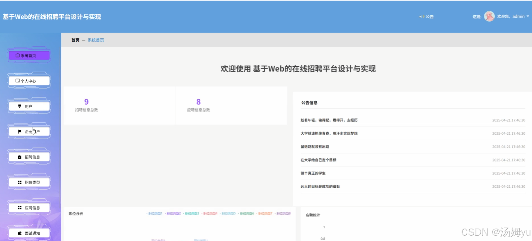 在当今快速发展的社会经济环境中,就业市场的复杂性和动态性不断增加。传统的招聘方式面临着诸多挑战,例如信息传播范围有限、招聘流程繁琐、求职者与企业之间的信息不对称等问题。随着互联网技术的普及和广泛应用,基于Web的在线招聘平台应运而生,成为解决这些问题的有效途径。在线招聘平台通过整合互联网资源,打破了时间和空间的限制,为求职者和企业提供了更加便捷、高效的交互方式。它不仅能够快速传播招聘信息,还能通过大数据分析和精准匹配技术,帮助求职者找到更合适的岗位,也为企业筛选出更符合需求的人才。随着移动互联网的兴起,用户对招聘平台的便捷性和实时性提出了更高的要求,这也促使在线招聘平台不断优化和升级,以满足市场需求。