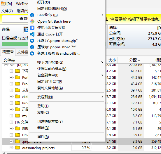 操作完成后,我回到 WizTree,再次右键同一个文件夹,菜单“唰”一下就弹出来了,完全不卡顿。问题解决。