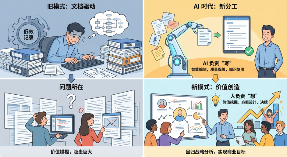 随着 AI 技术的介入,需求分析的工作方式正在经历一场质变。但这并不意味着 AI 要取代分析师,恰恰相反,AI 是来把分析师从繁琐的 “填坑” 工作中解救出来的。