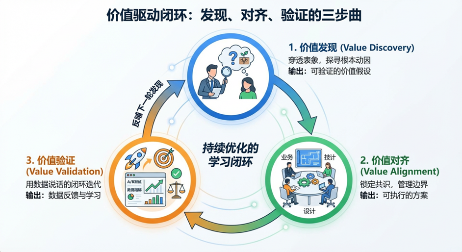 价值驱动不仅仅是个口号,它是一套动态的、有机的闭环流程,贯穿于产品的每一次迭代中。