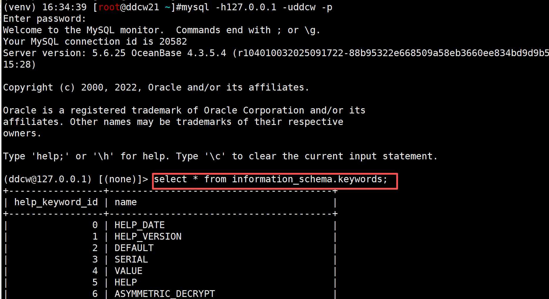 mysql本身就有插件的, 所以这次主要是验证ob之类的兼容mysql的数据库. 但是ob中的mysql.help_keyword本来就是空的(兼容了,但不完全兼容), 所以我们可以创建一个其它表, 比如db1.help_keyword,再将sql改写为查询这个表的,测试如下: