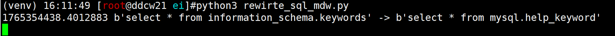 但有那么一种支持mysql协议的非mysql数据库也想使用这个功能, 比如:某业务需要查询information_schema.keywords, 但该数据库并没有实现information_schema.keywords(兼容了,但不完全兼容), 而且业务无法修改代码(可能都没得源码), 这时候就可以使用SQL改写来实现兼容性了.