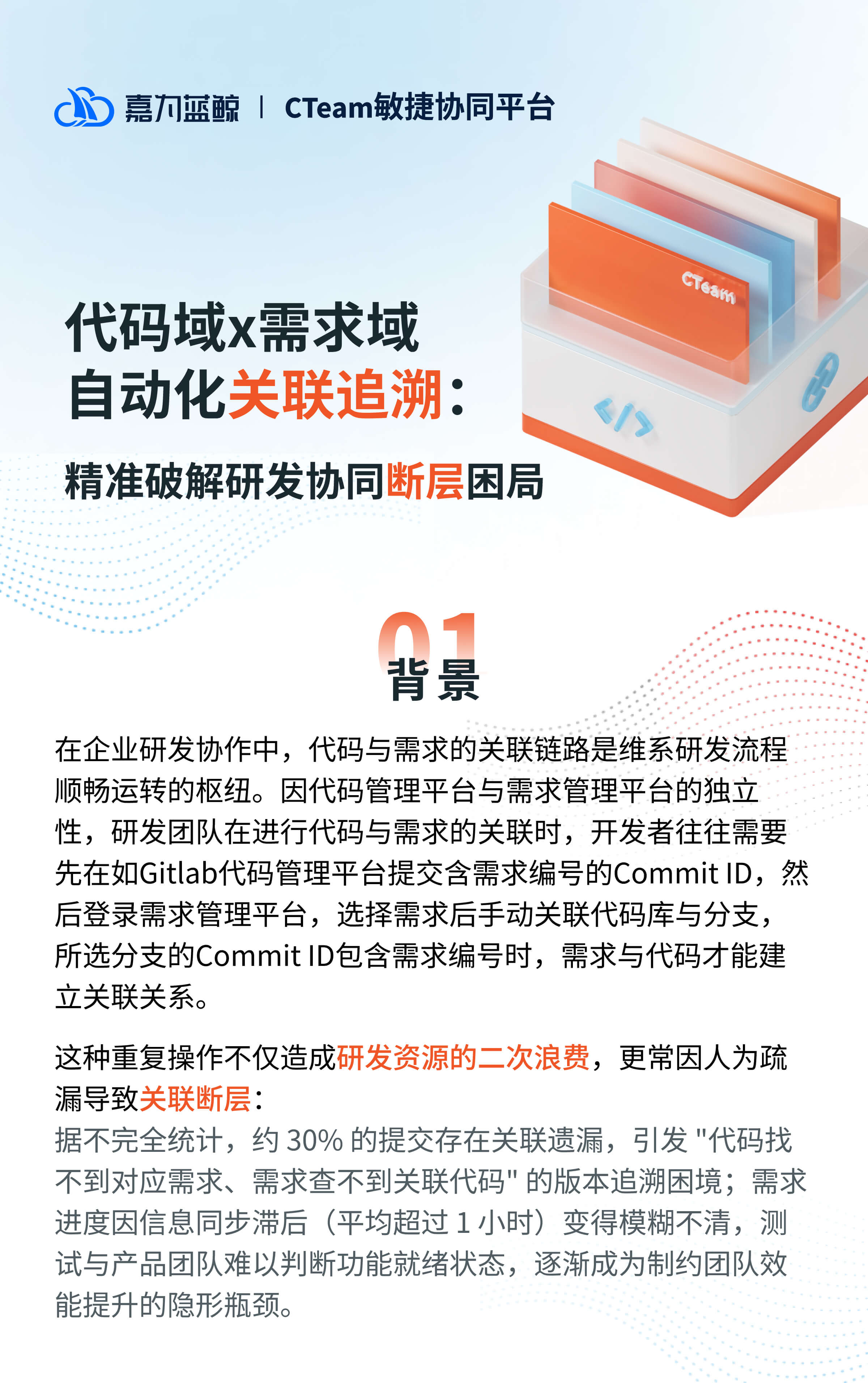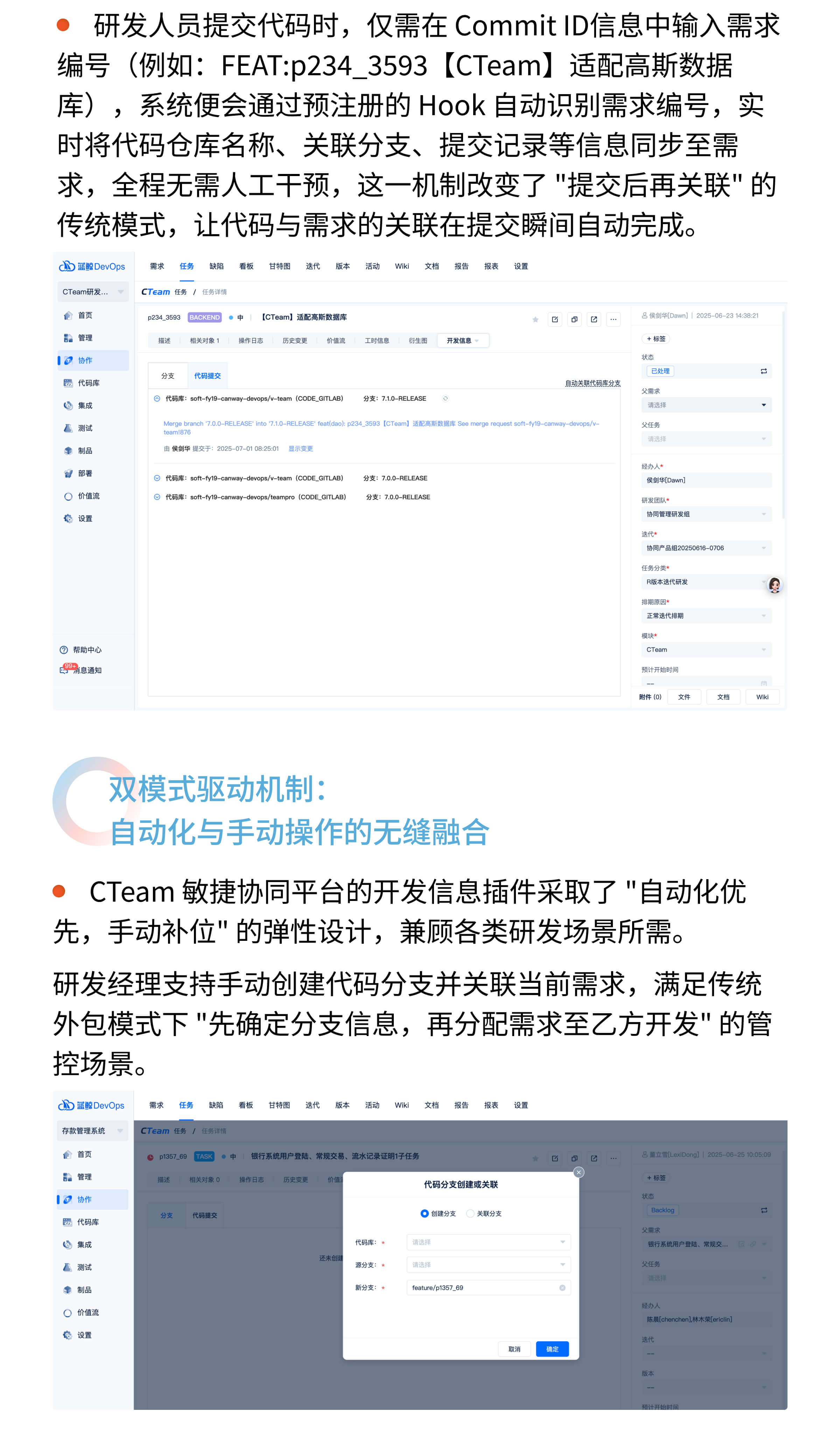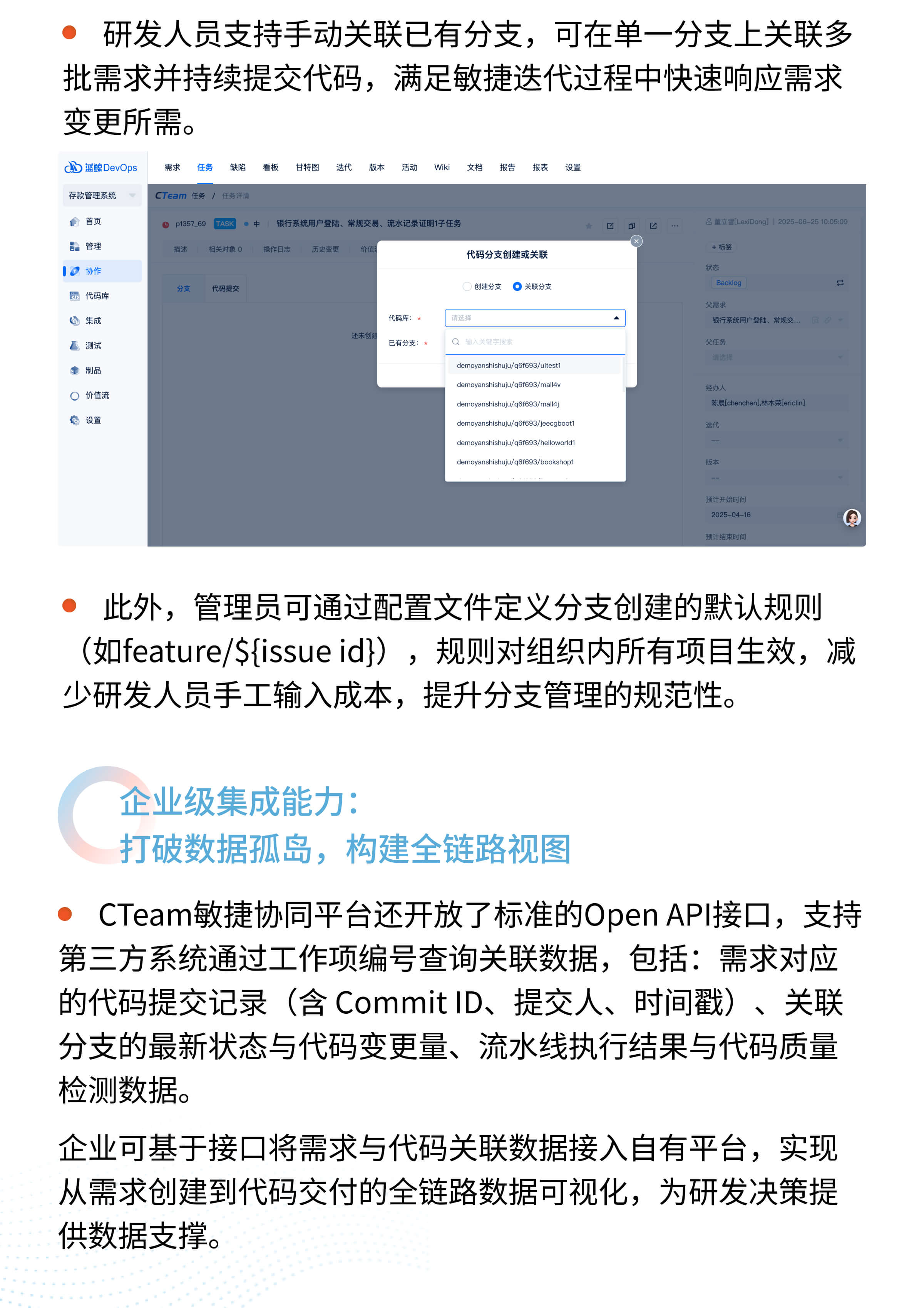 官网原文(免费申请演示):嘉为蓝鲸CTeam敏捷协同平台|代码域x需求域自动化关联追溯:精准破解研发协同断层困局